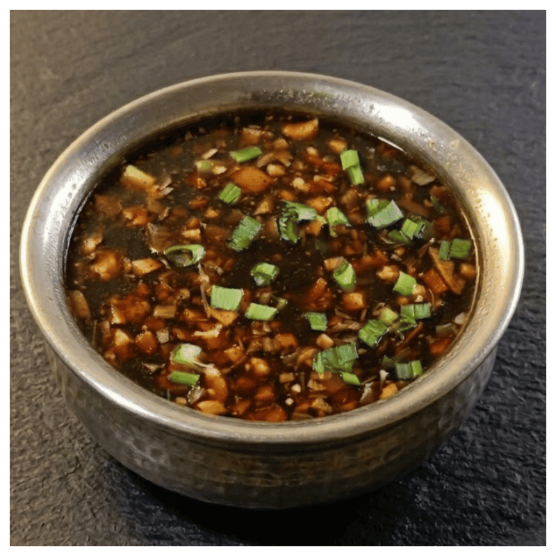 W środku znajdziesz bogactwo świeżych, sezonowych warzyw, chrupiące grzyby mun oraz delikatny tofu, które nadają zupie wyjątkowej tekstury i wartości. Całość wykończona świeżym szczypiorkiem i olejem sezamowym.